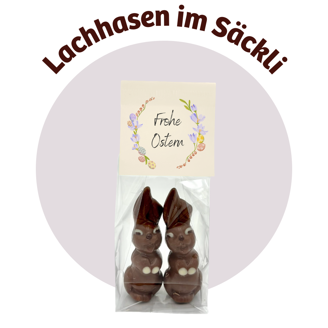 Zwei Hasen, doppelte Freude. Das Lachhasen Duo mit individuell gestaltbarem Reiter im Osterdesign für ein persönliches Geschenk.